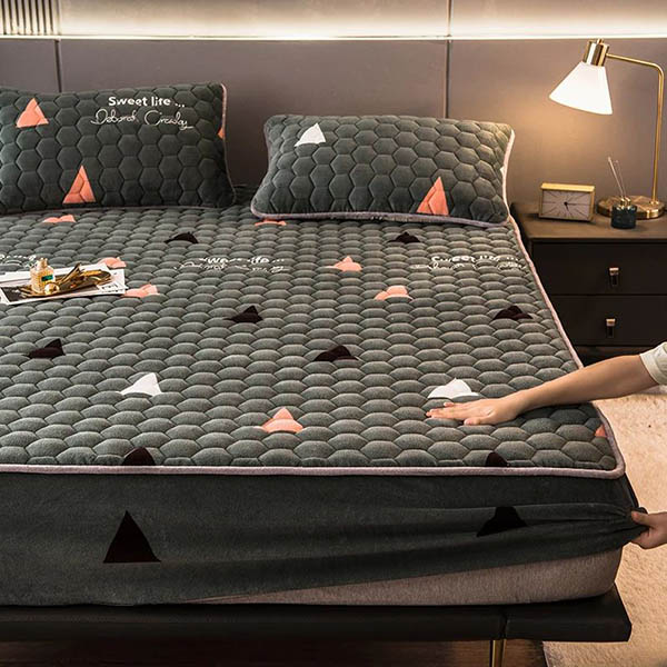 🌙 Užite si pokojný spánok s našou súpravou posteľnej bielizne VELVETLUX! Táto súprava s moderným dizajnom, mäkká a šetrná k pokožke, obsahuje plachtu a dve obliečky na vankúš. K dispozícii je v sivozelenej farbe s trojuholníkmi alebo ružovej so srdiečkami. 🛌✨