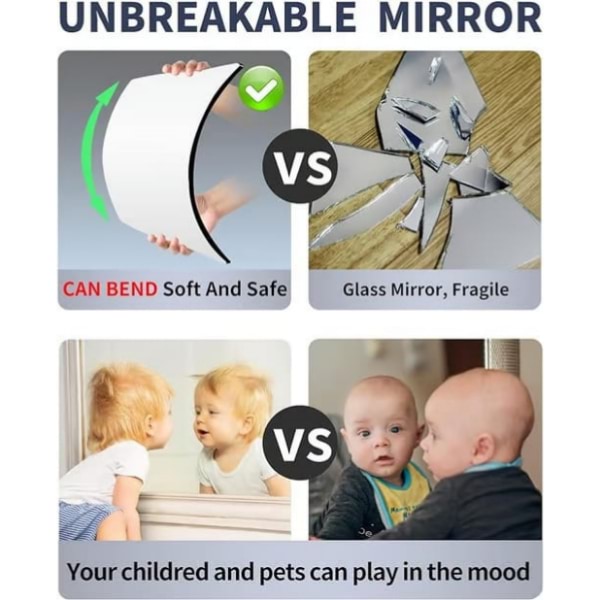 Vyrobené z polystyrénu, toto zrkadlo je bezpečné, flexibilné a pri páde sa nerozbije.
