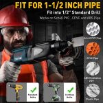 Jednoducho pripevnite k akejkoľvek štandardnej vŕtačke – nie sú potrebné žiadne špeciálne nástroje. Ideálne pre potrubia z PVC, medi, hliníka a nehrdzavejúcej ocele.