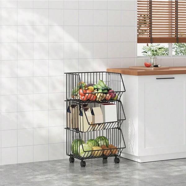 Tento vozík je ideálny na skladovanie zeleniny, ovocia, suchých potravín a ďalších vecí, pomôže vám mať všetko na dosah.